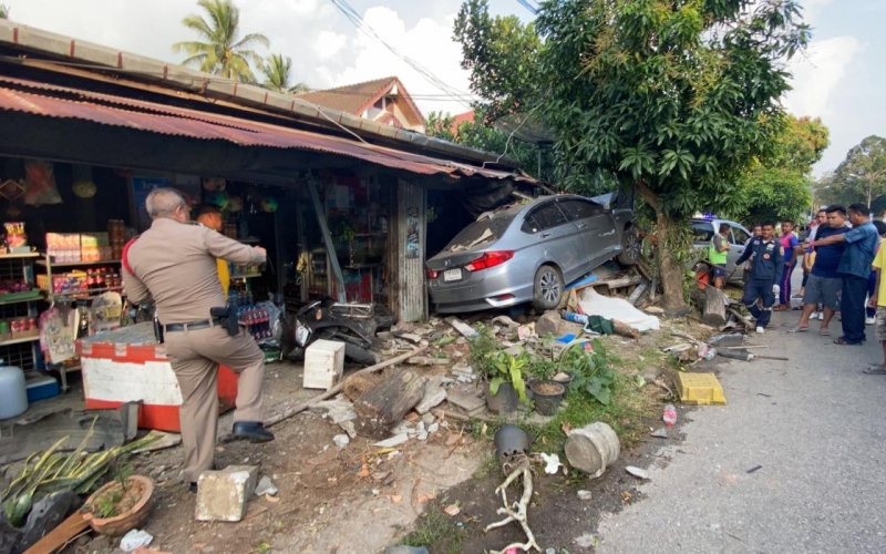 เมื่อช่วงเย็นวันที่ 15 มกราคม ร ต อ มานพ สุวรรณมณี ร้อยเวร สภ ศรีนครินทร์ เข้าตรวจสอบร้านขายของชำ เลขที่ 52 หมู่ที่ 1 ตำบลบ้านนา อ ศรีนครินทร์ จ พัทลุง ตั้งอยู่ริมถนนเพชรเกษม สายพัทลุง ตรัง ฝั่งขาเข้าเมืองพัทลุง โดยพบรถยนต์เก๋ง ยี่ห้อฮอนด้า ซิตี้ สีบรอนซ์เทา ทะเบียน 7 กศ 8297 กรุงเทพมหานคร พุ่งชนร้านขายของชำ และใต้รถเก๋งพบร่าง นางพรทิพย์ เพชรคง อายุ 61 ปี อดีตข้าราชการครูโรงเรียนบ้านนาวง นอนเสียชีวิต ส่วนนางช่อชบา วราสินธ์ อายุ 52 ปี เจ้าของร้านขายของชำได้รับบาดเจ็บสาหัส